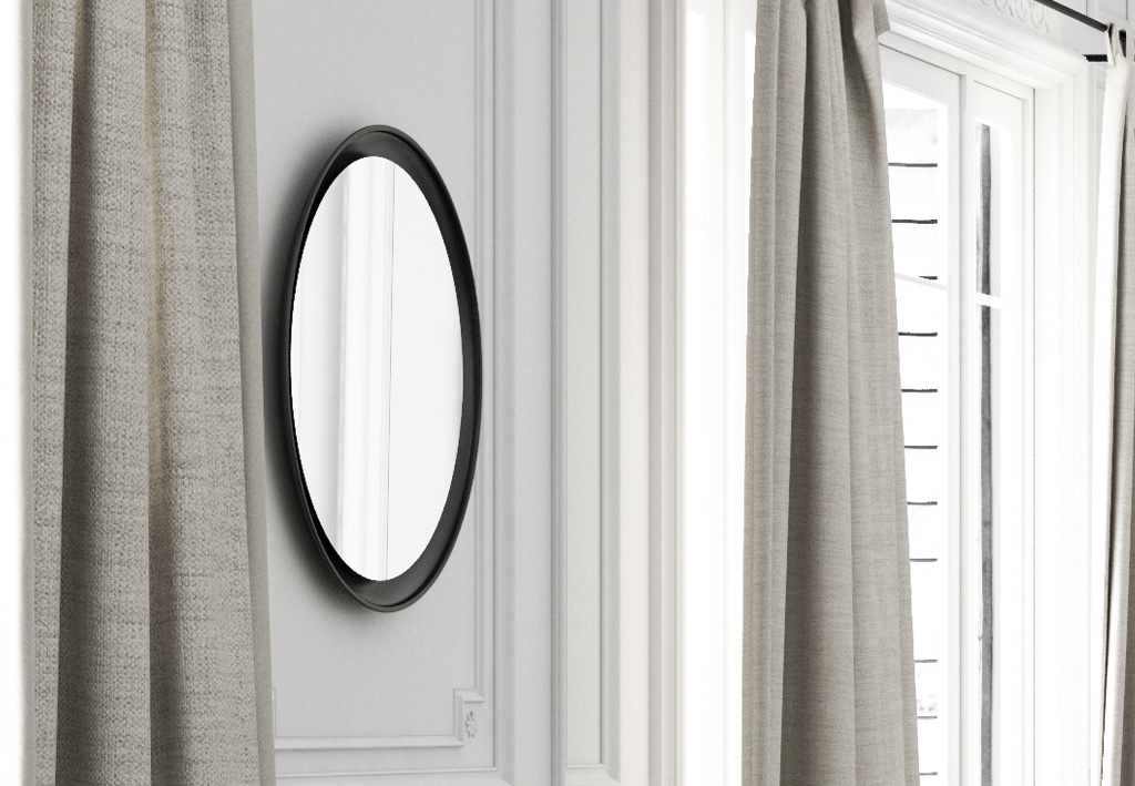 La separación alrededor del espejo acentúa el círculo y una sombra se crea en el metal dando una sensación de la profundidad