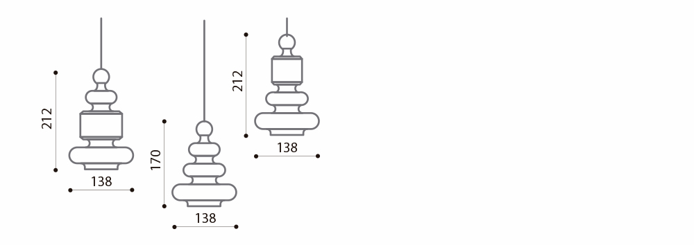 Cada colgante individual es una pieza de madera torneada a mano que en su base cuenta con un hueco cilíndrico para albergar una lámpara tipo Dicroica de LED 220v . (no incluida)